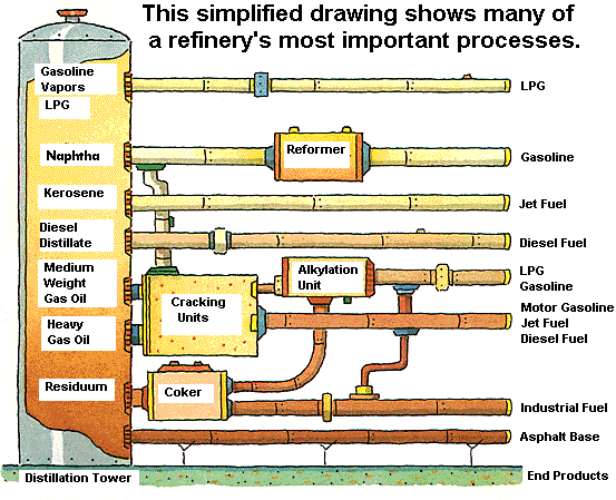 Als olie wordt geraffineerd moet alles in de olie worden gebruikt. Alles heeft een functie. Het zwaarste bestanddeel, de teer, wordt bijvoorbeeld gebruikt voor onze snelwegen. Het lichtste deel, gas, wordt gebruikt voor het verwarmen van woningen, brandstof voor sommige auto’s en dergelijke.